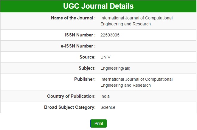 International Journal of Computational Engineering Research(IJCER) is an international online open access journal in English published monthly. The aim of IJCER is to publish original research work and review work in rapidly developing field of Engineering and computer science. This journal is an online journal having full access to the research and review paper. The journal aims to cover the latest outstanding developments in the field of Engineering and computer science
